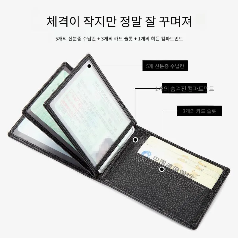바이슨데님 풀그레인 소가죽 카드 홀더 빈티지 패션 비즈니스 캐주얼 남성 - POIZON