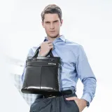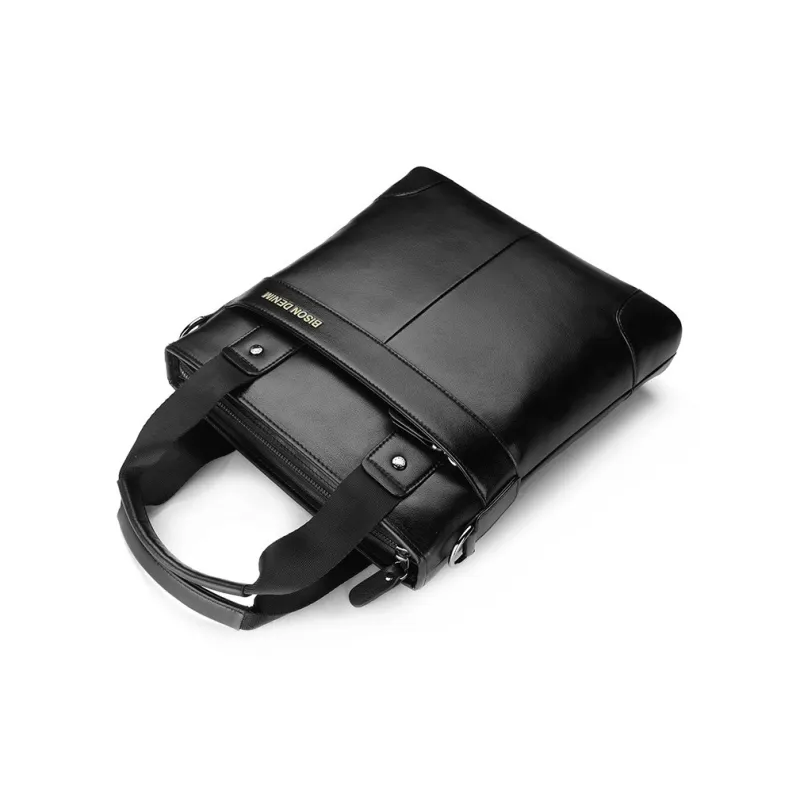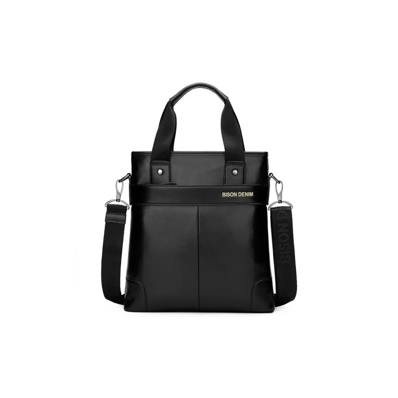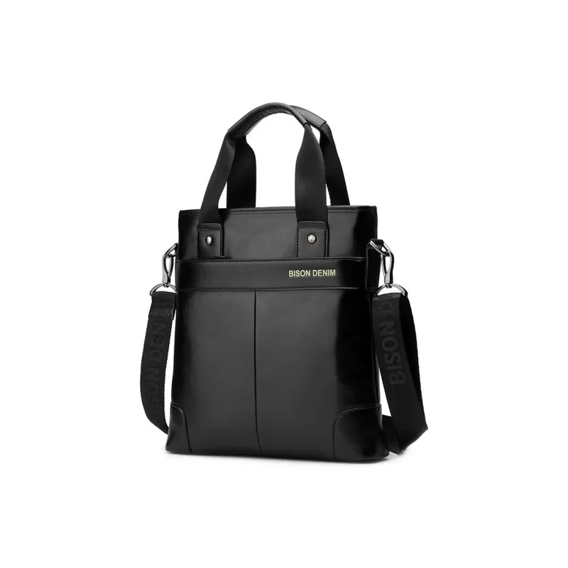 바이슨데님 풀그레인 소가죽 핸드백, 숄더 백, 크로스백 남성 블랙/커피 - POIZON