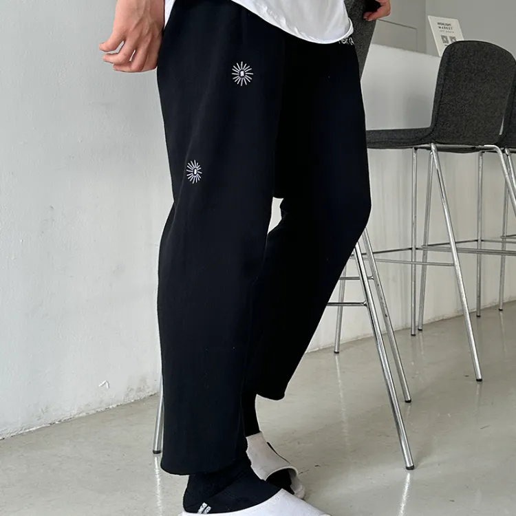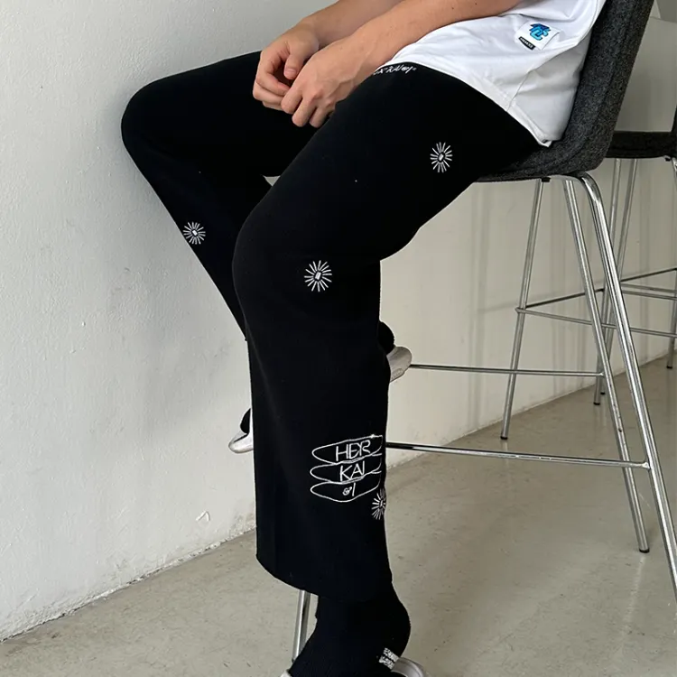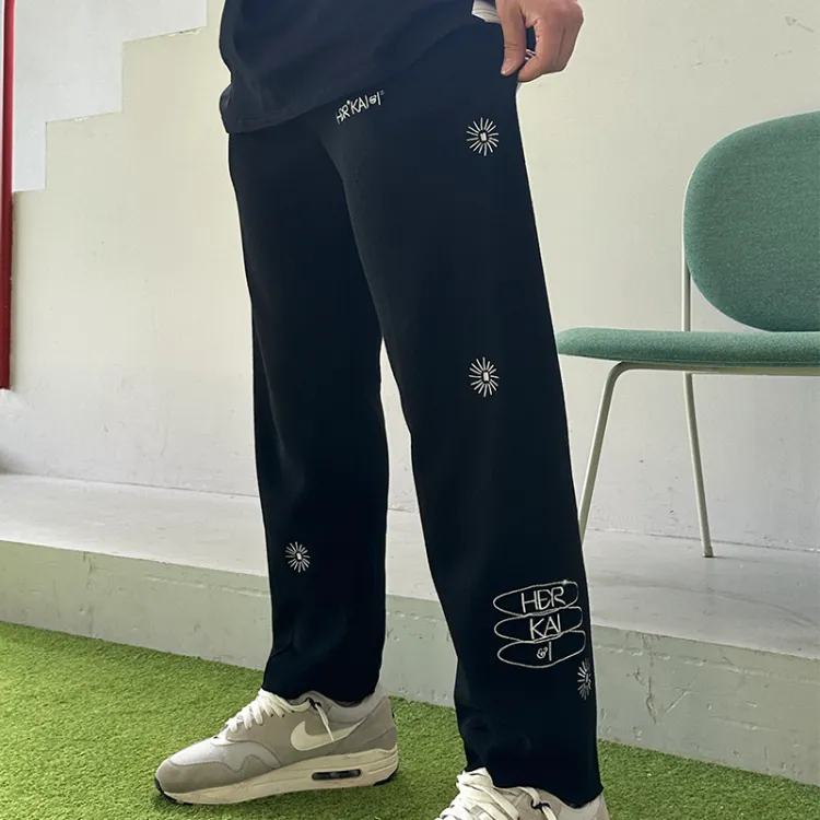 블랙 바지 화이트 자수 로고