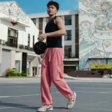 BKCXZICE Euwen 핑크 바지 남녀공용 스포츠 팬츠 - POIZON