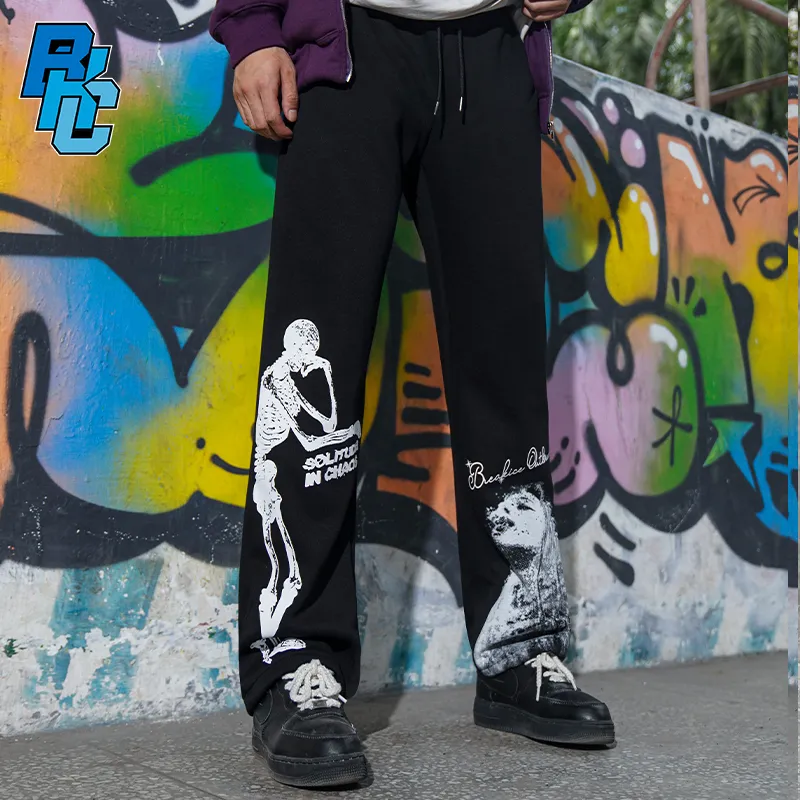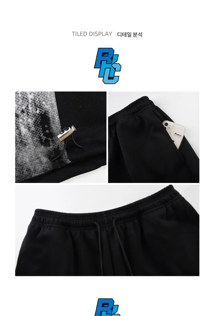 BKCXZICE 무드 그래피티 바지 남녀공용 스포츠 팬츠