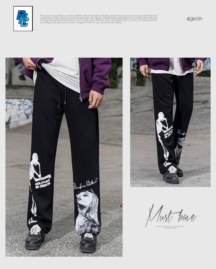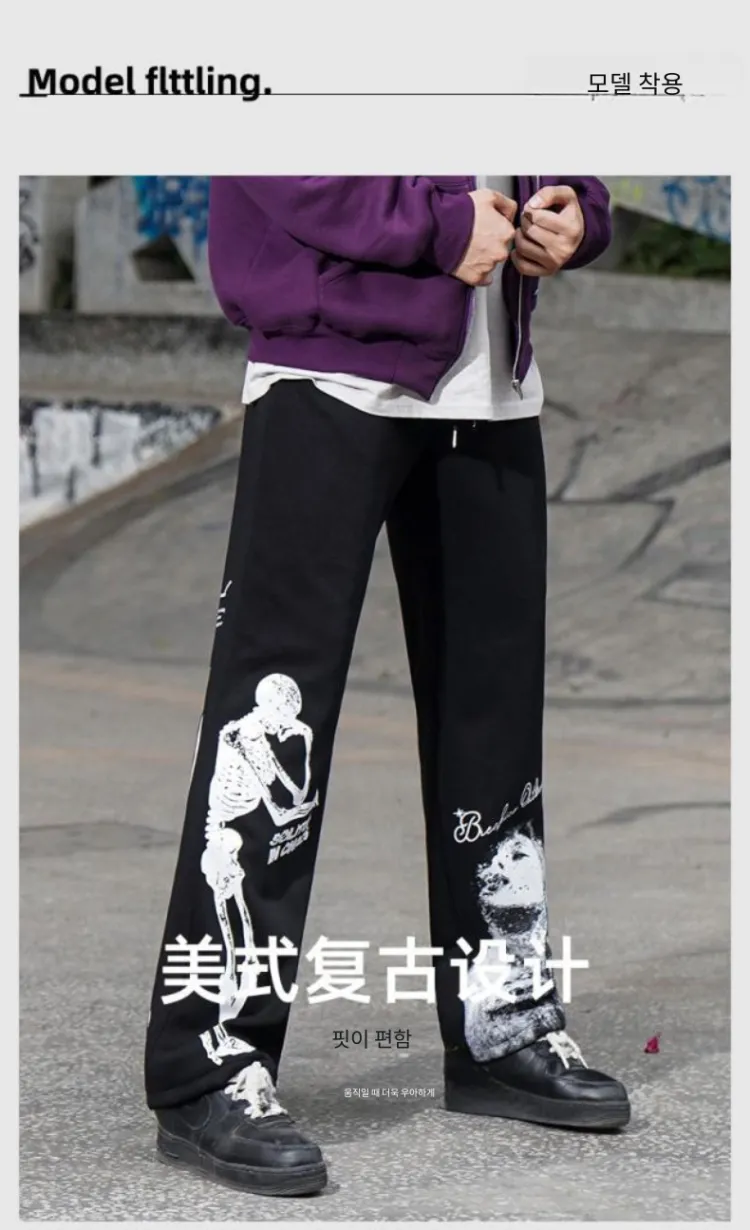 BKCXZICE 무드 그래피티 바지 남녀공용 스포츠 팬츠 - POIZON