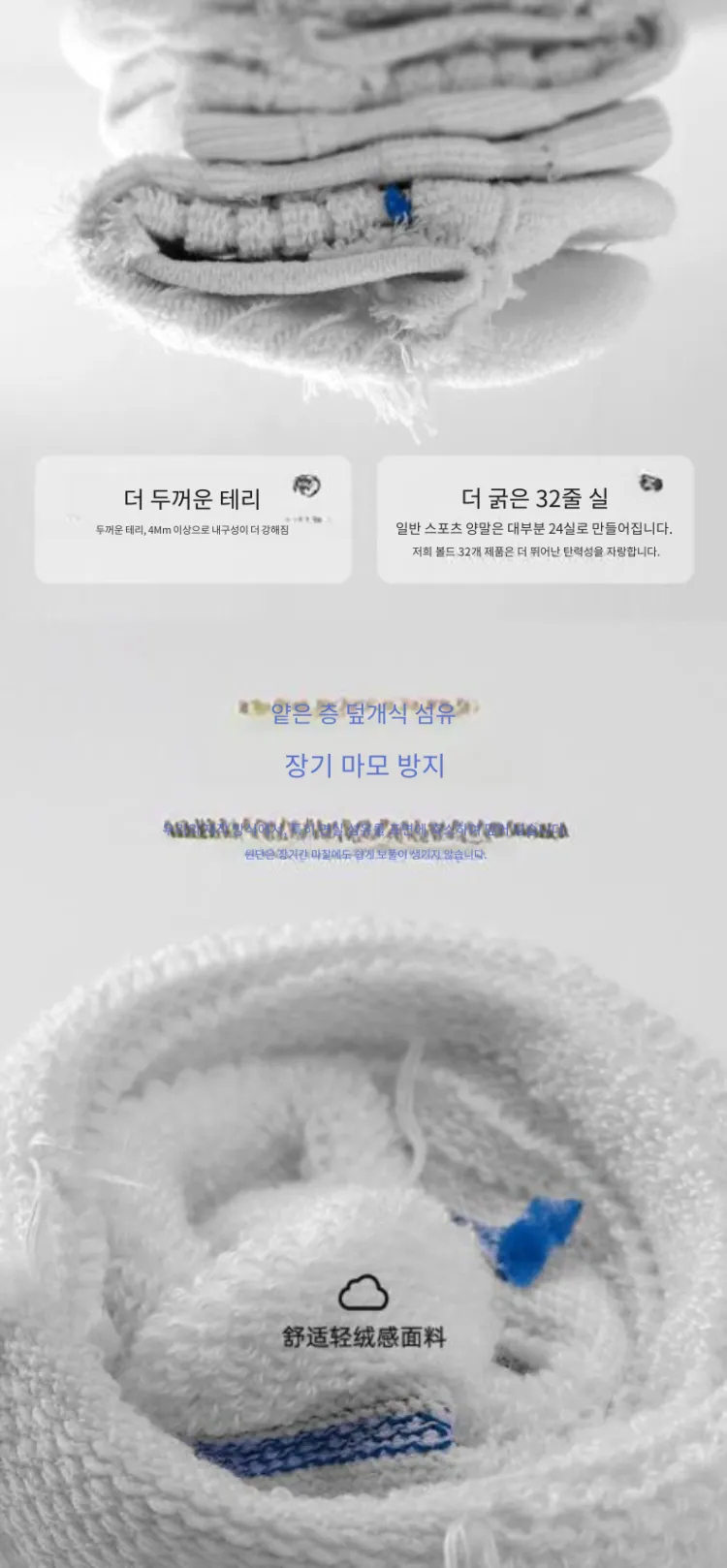3팩 세트 - Bull 허벅지 양말 (화이트+그레이+화이트 블루)