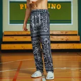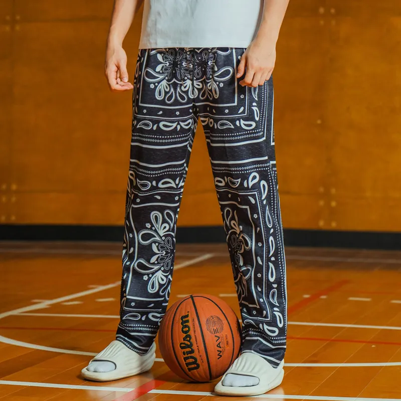 BKCXZICE 가을 농구 스포츠 트레이닝 스웻팬츠 통기성이 좋은 스트리트 스타일 캐주얼 스트레이트핏 바지 남녀공용 블랙 - POIZON