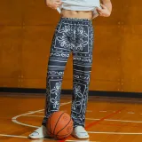 BKCXZICE 가을 농구 스포츠 트레이닝 스웻팬츠 통기성이 좋은 스트리트 스타일 캐주얼 스트레이트핏 바지 남녀공용 블랙