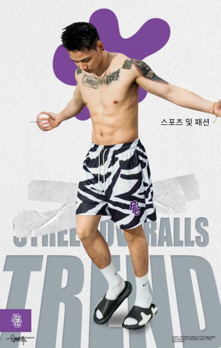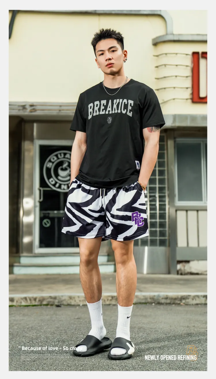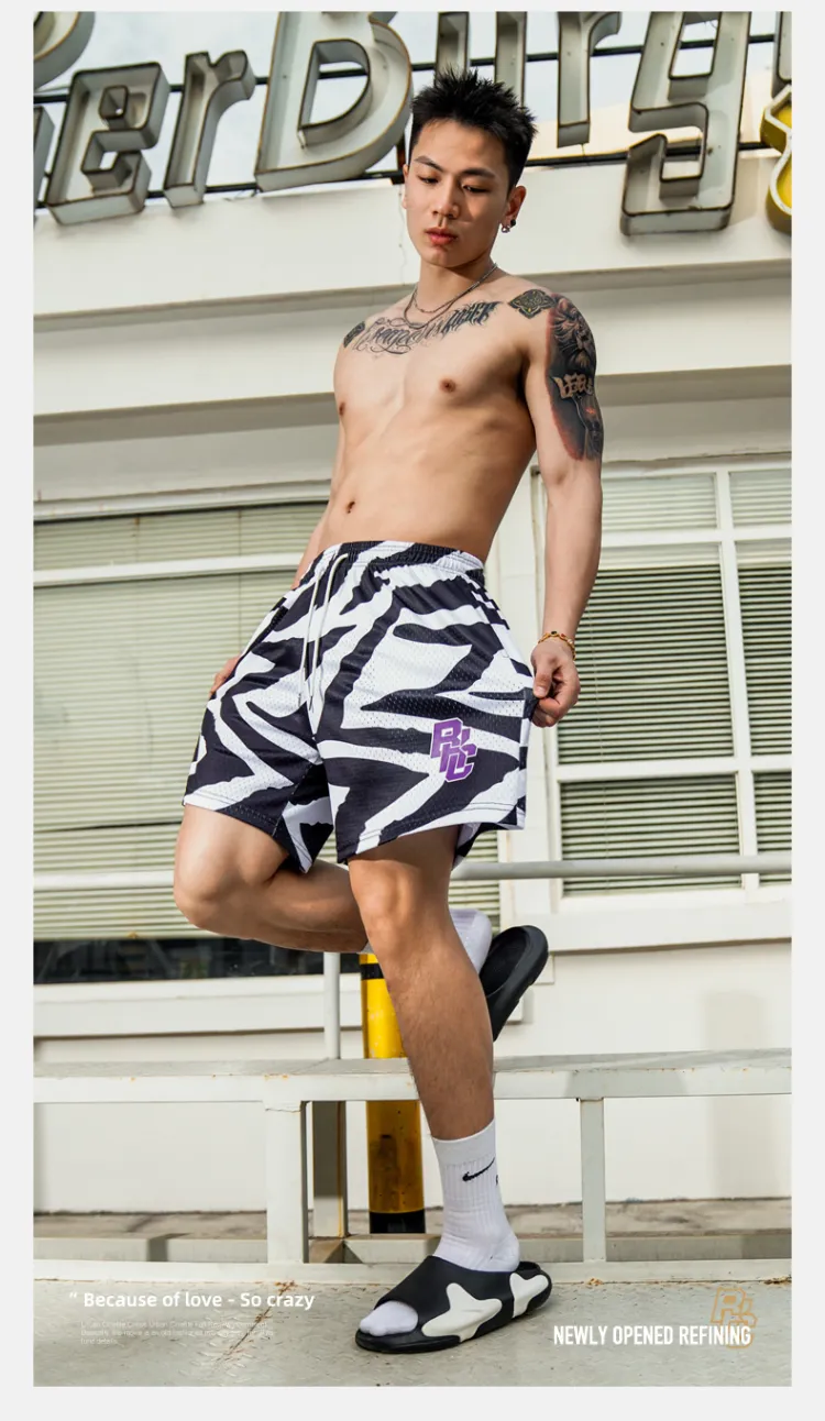BKCXZICE 루즈핏 통기성이 좋은 스포츠 반바지 남녀공용 지브라 프린트 - POIZON