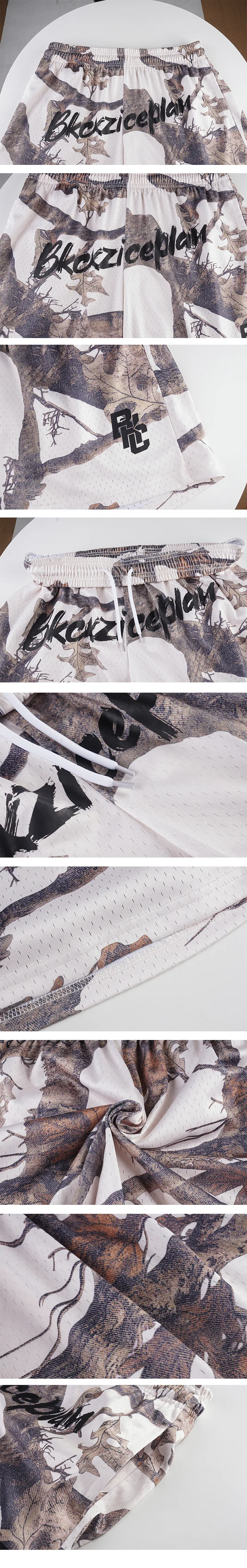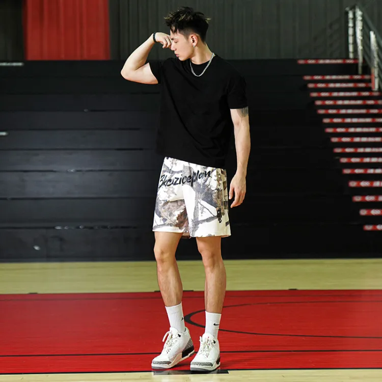 BKCXZICE 식물/화훼 빈티지 럭셔리 스트리트웨어 농구 스포츠 포 쿼터 반바지 캐주얼 트레이닝 피트니스 바지 남녀공용 - POIZON
