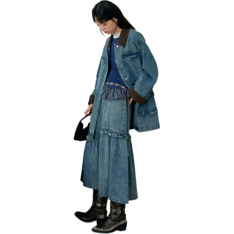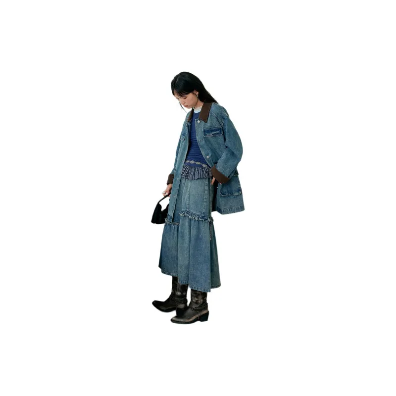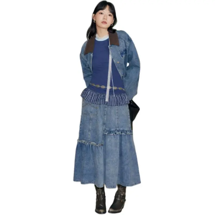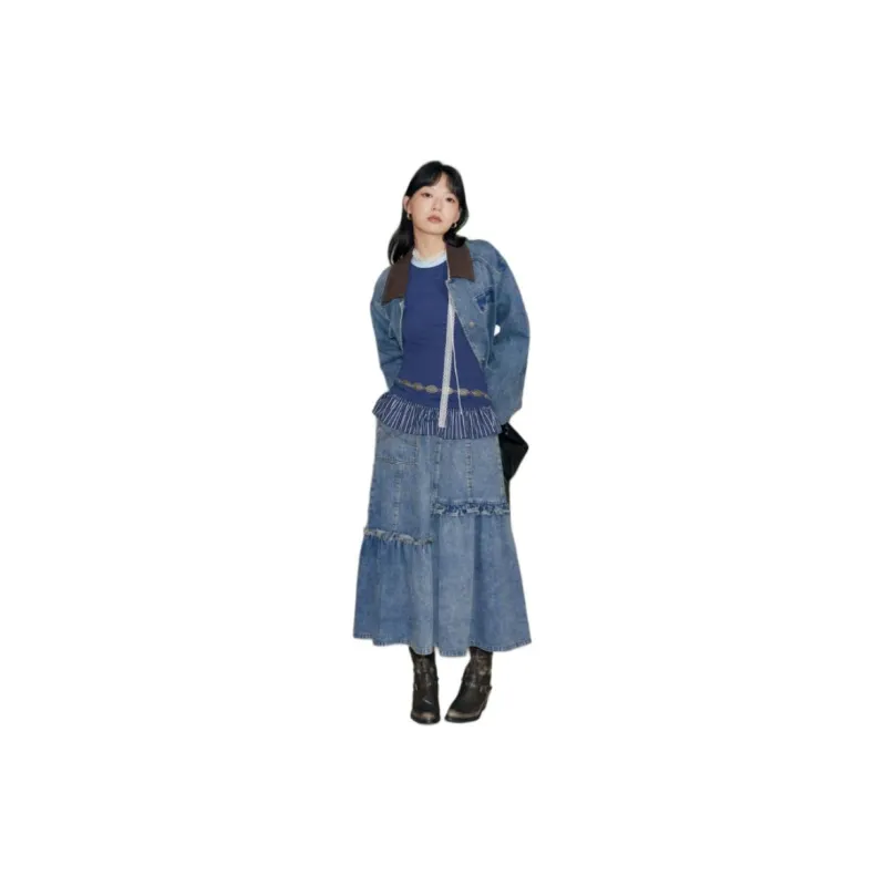 BLUEerror 여성 데님 롱 스커트 - POIZON