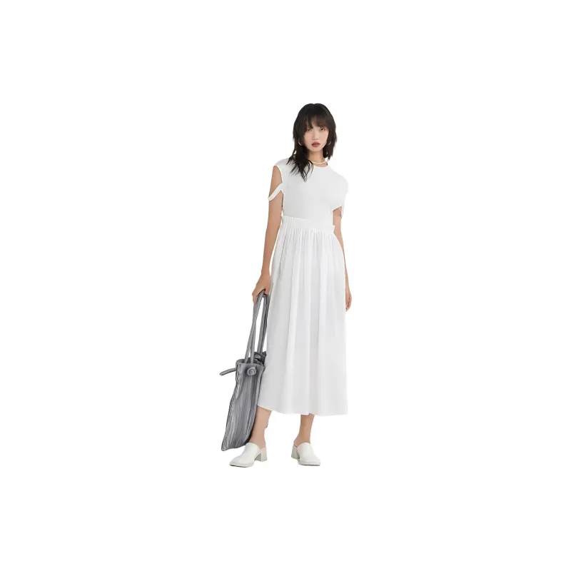 BLUEerror 화이트 여성 반팔 원피스 - POIZON