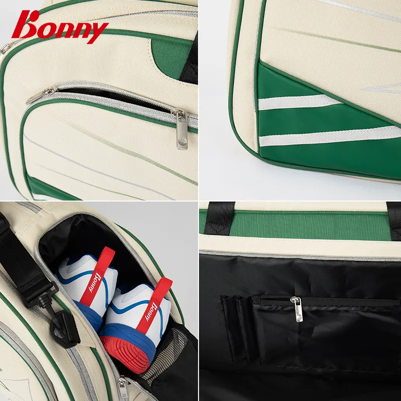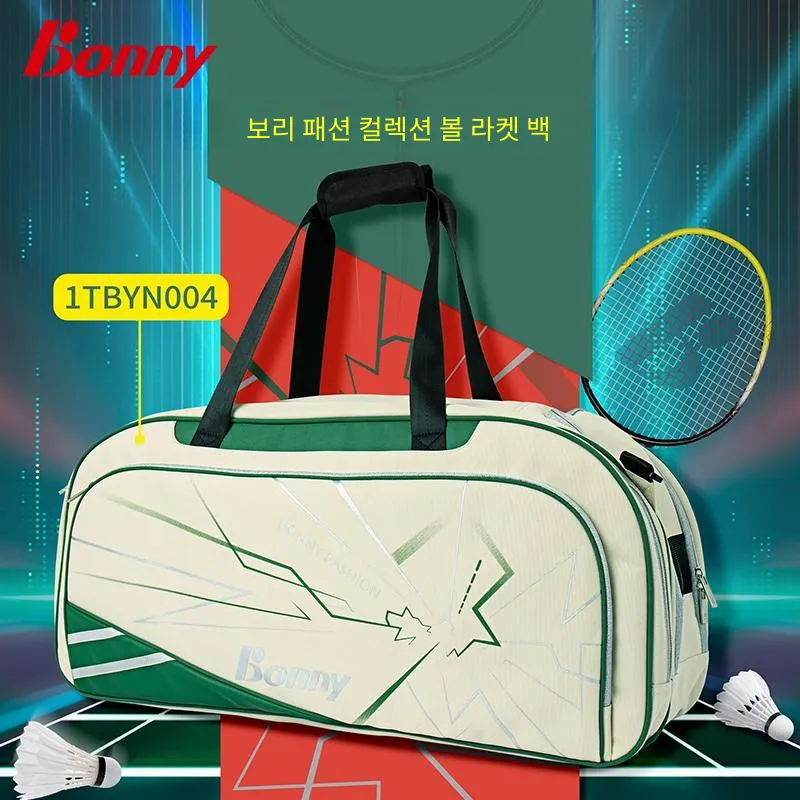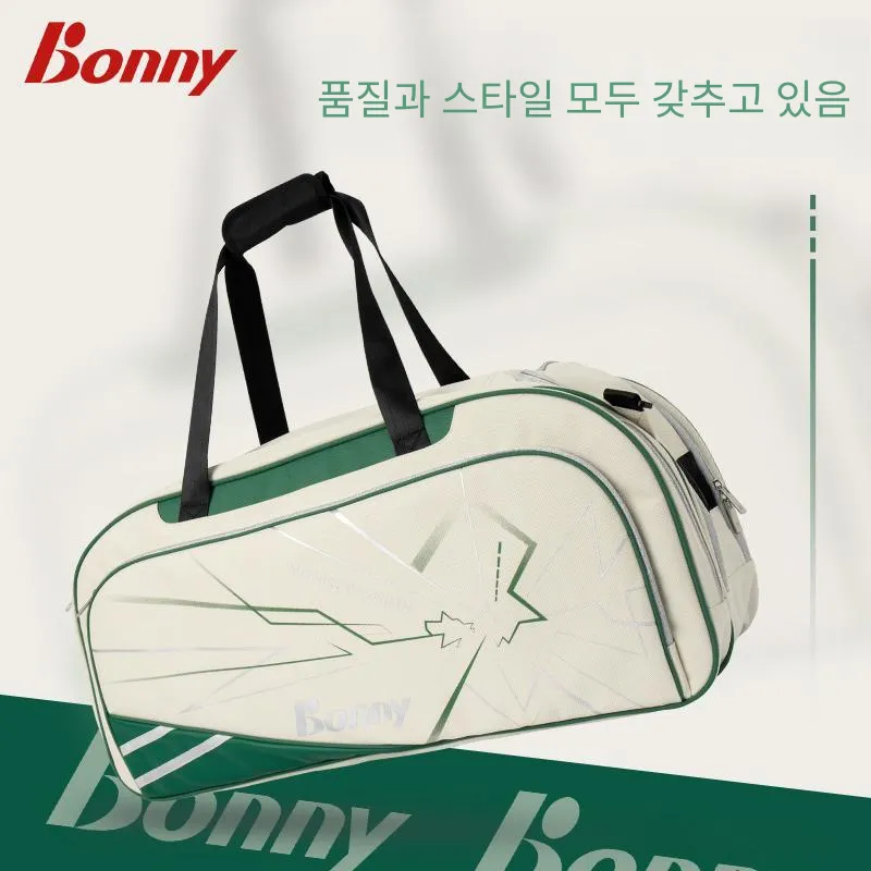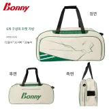 BONNY 배드민턴 라켓 백 식스 스포티 스타일 숄더백 베이지 그린 남녀공용 개성 있는 신발 수납칸