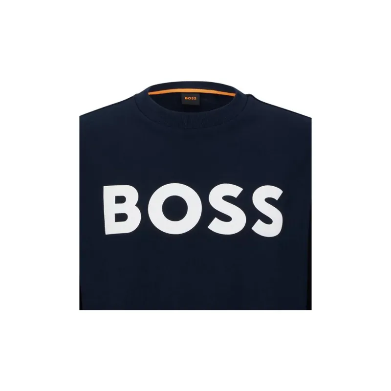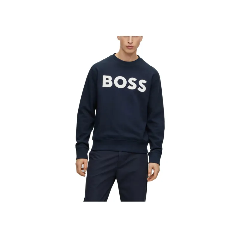휴고 보스 러버 프린트 로고 릴렉스핏 코튼 테리 스웨트셔츠 다크 블루