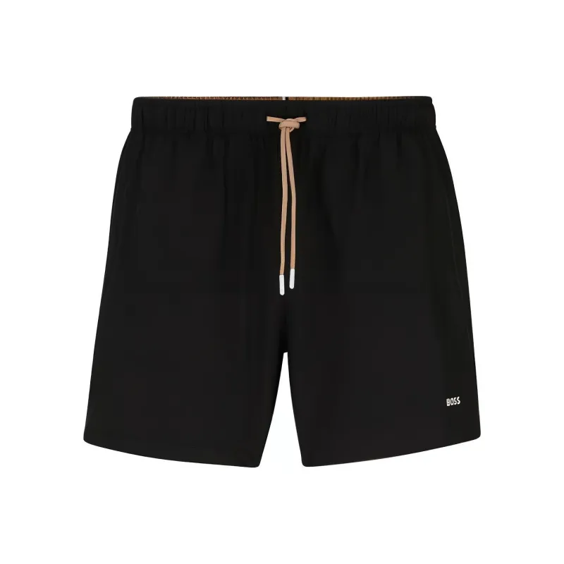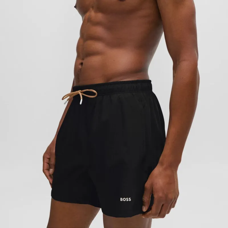 휴고 보스 빠르게 마르는 수영 반바지, 로고 포함 프린팅 캐주얼 반바지 남성 블랙 - POIZON
