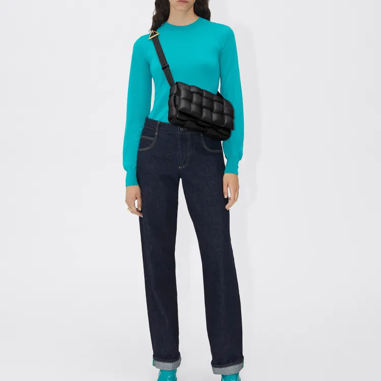 보테가 베네타 패딩 처리된 카세트 양가죽 필로우 백 숄더 백 레귤러 여성 블랙 - POIZON