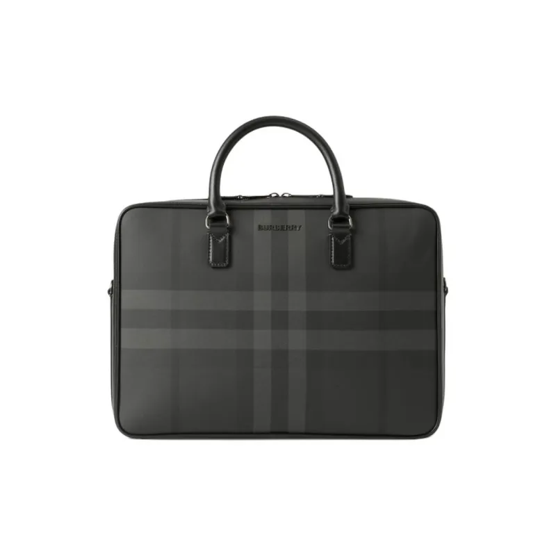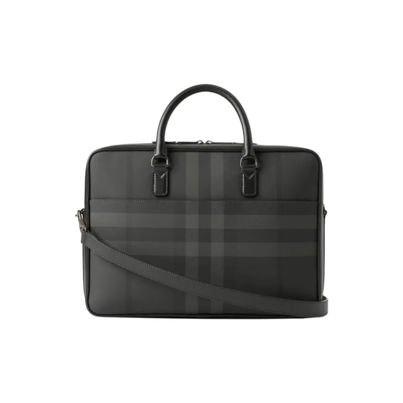 버버리 Ainsworth 열가소성 폴리우레탄, 면, 송아지 가죽 서류 가방 남성 차콜 - POIZON
