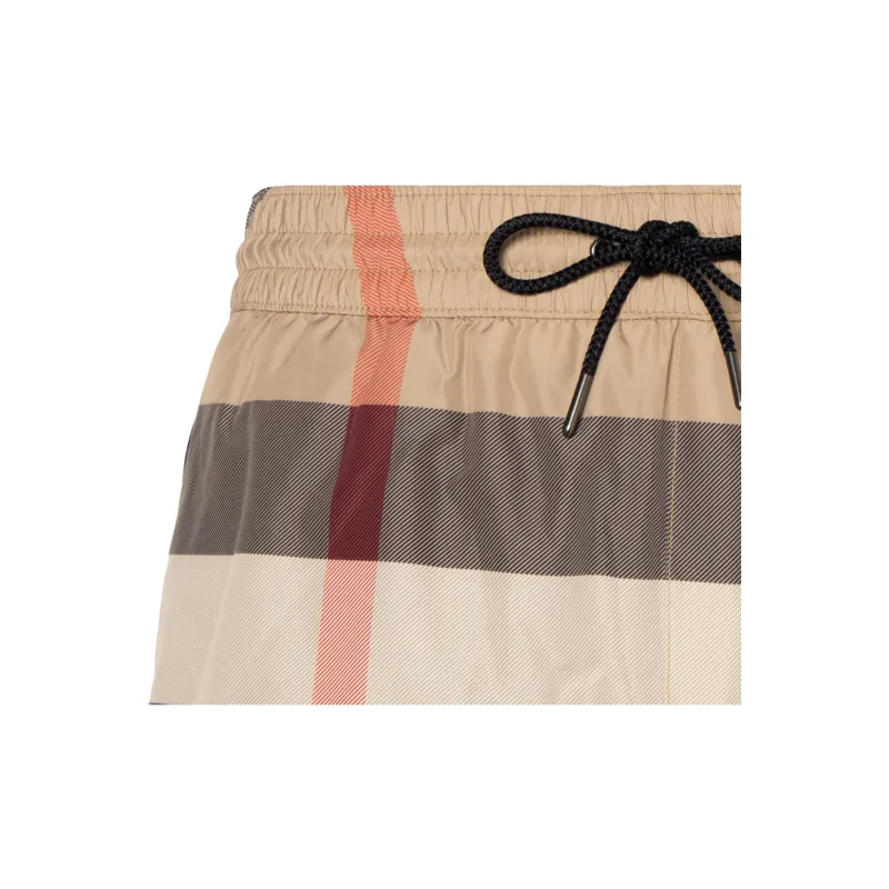 버버리 이그재저레이트 체크 드로우코드 스윔 쇼츠 아카이브 베이지
