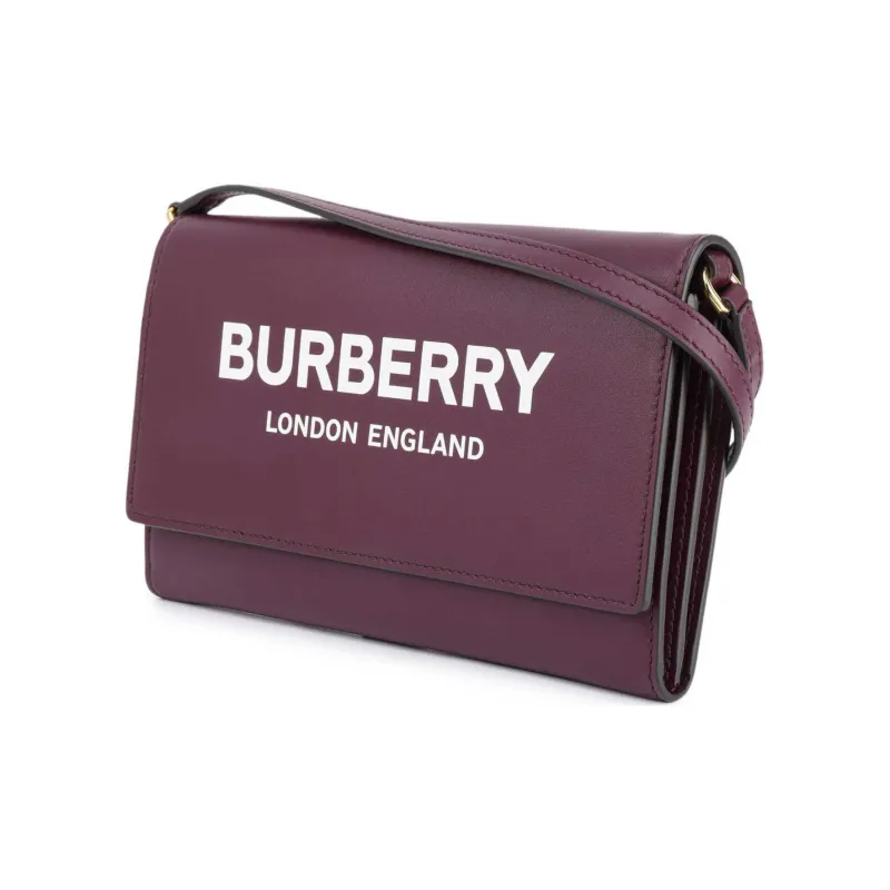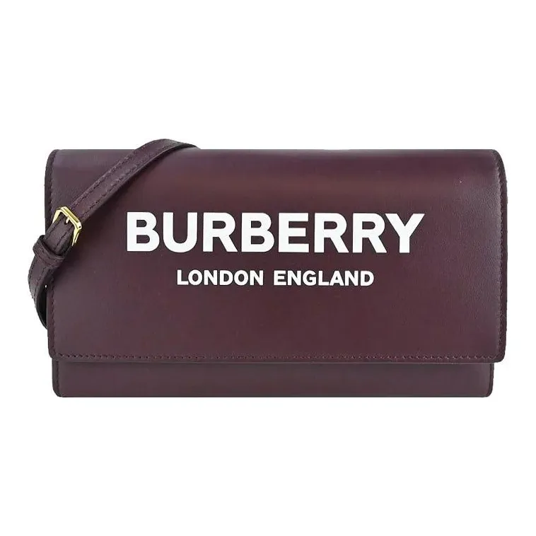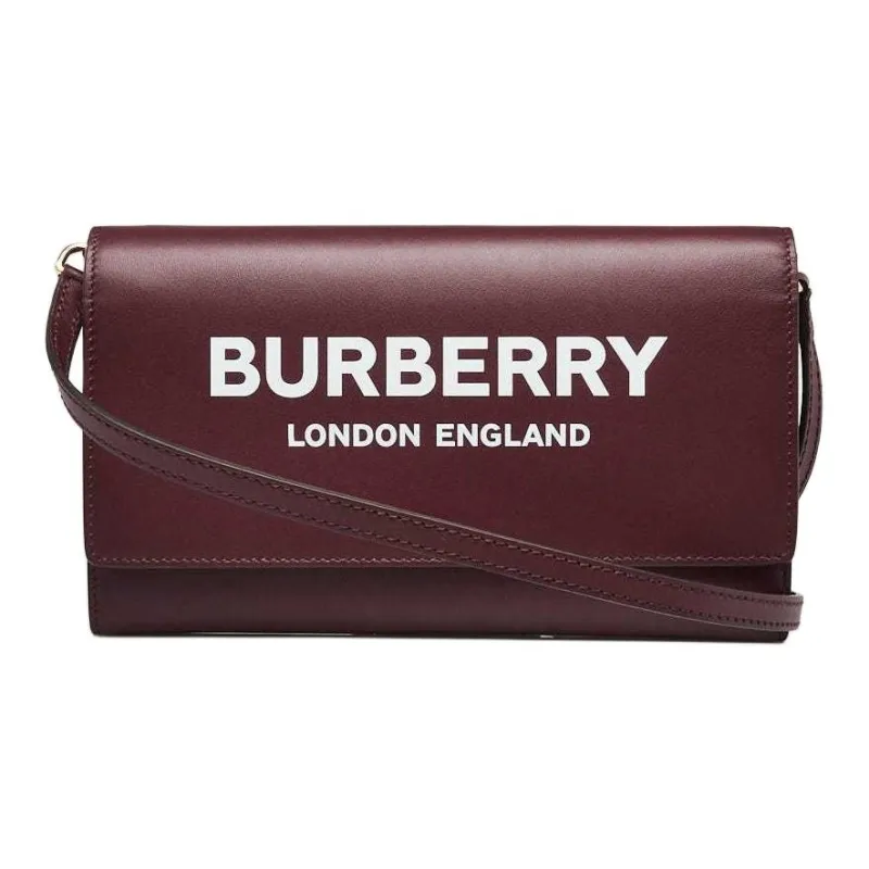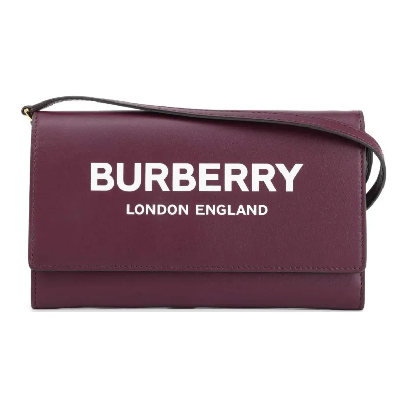 버버리 디태처블 스트랩 로고 프린트 레더 지갑 마호가니 레드 - POIZON