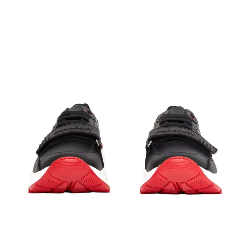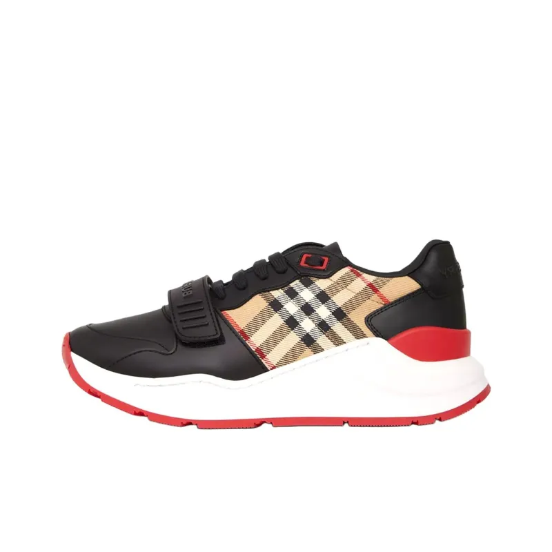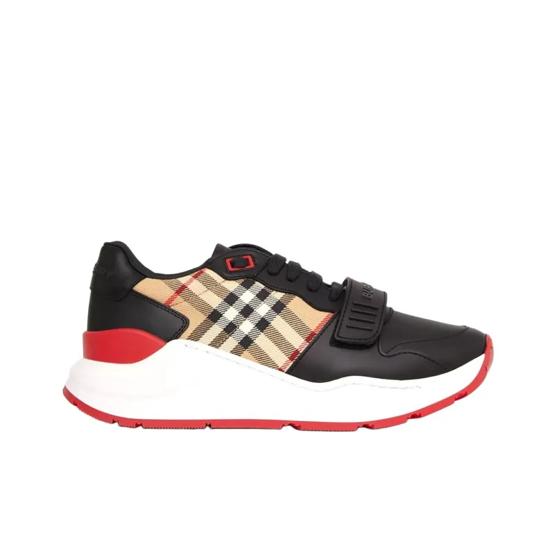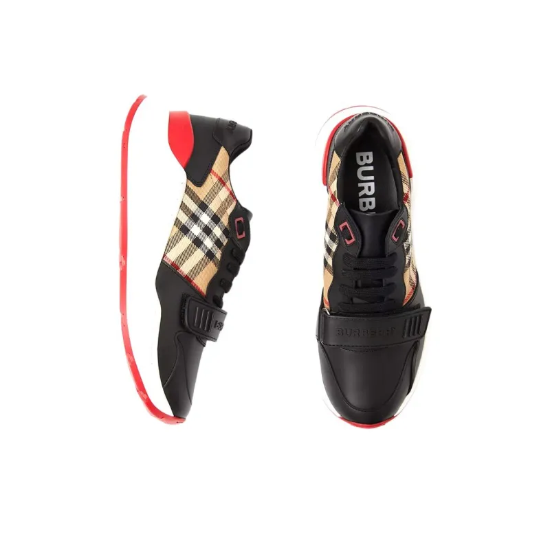 (W) 버버리 레더 빈티지 체크 코튼 스니커즈 블랙 아카이브 베이지 - POIZON