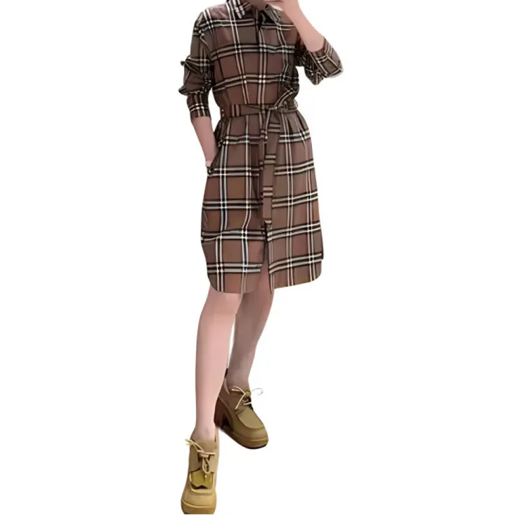 버버리 브라운 여성 긴팔 원피스 - POIZON