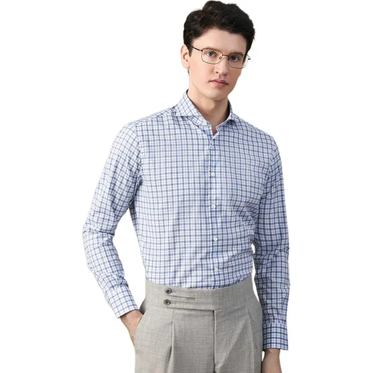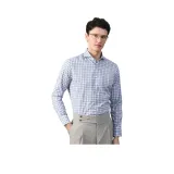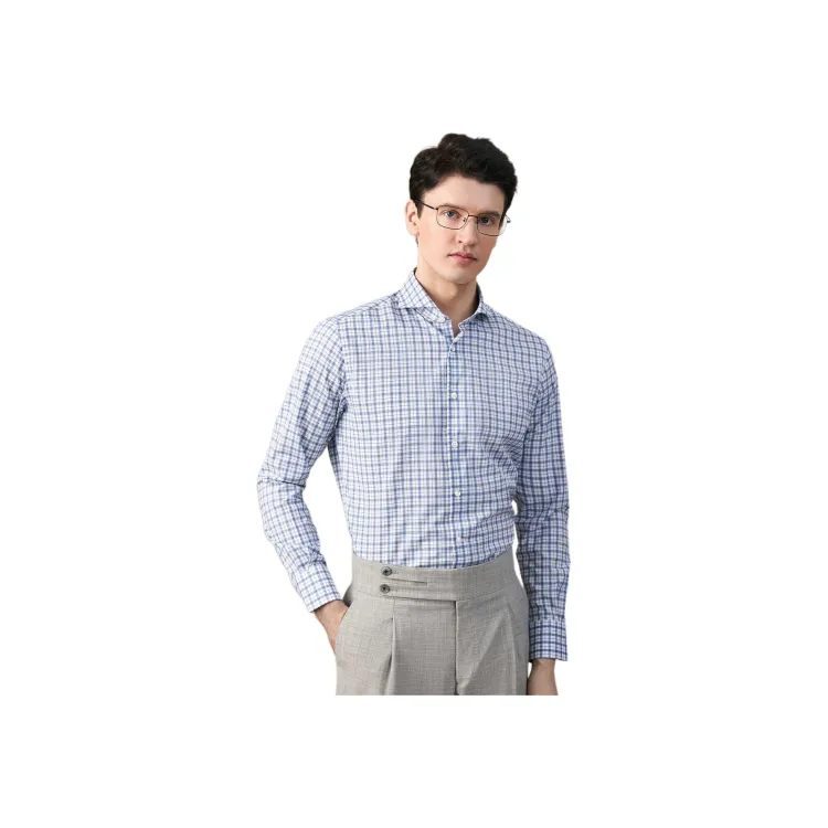 BY CREATIONS 블라우스 남성 블루 화이트 체크무늬