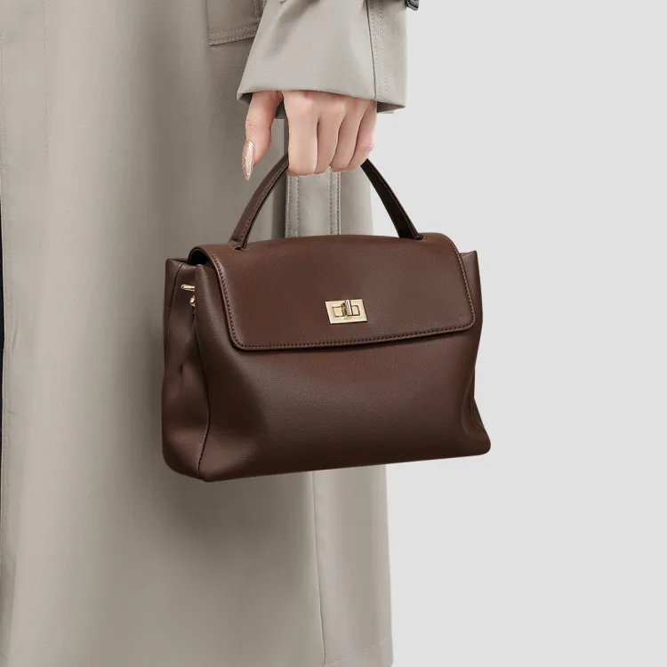 C°BANNER 스플릿 소가죽 및 합성 가죽 <브랜드_1> E 어깨 크로스백, 핸드백 레귤러 여성 초콜렛 - POIZON