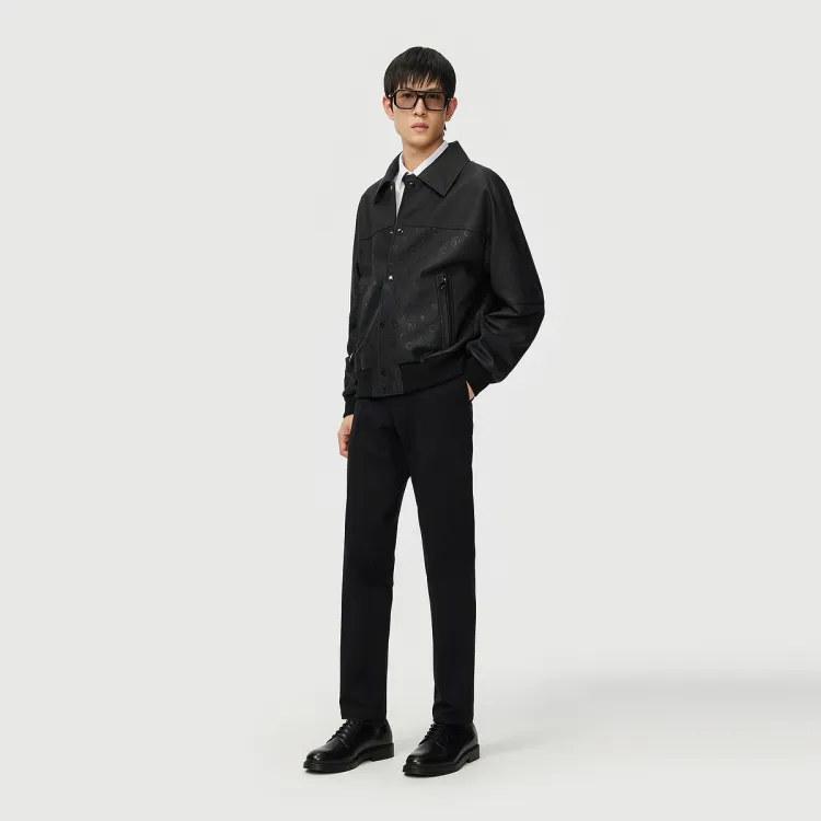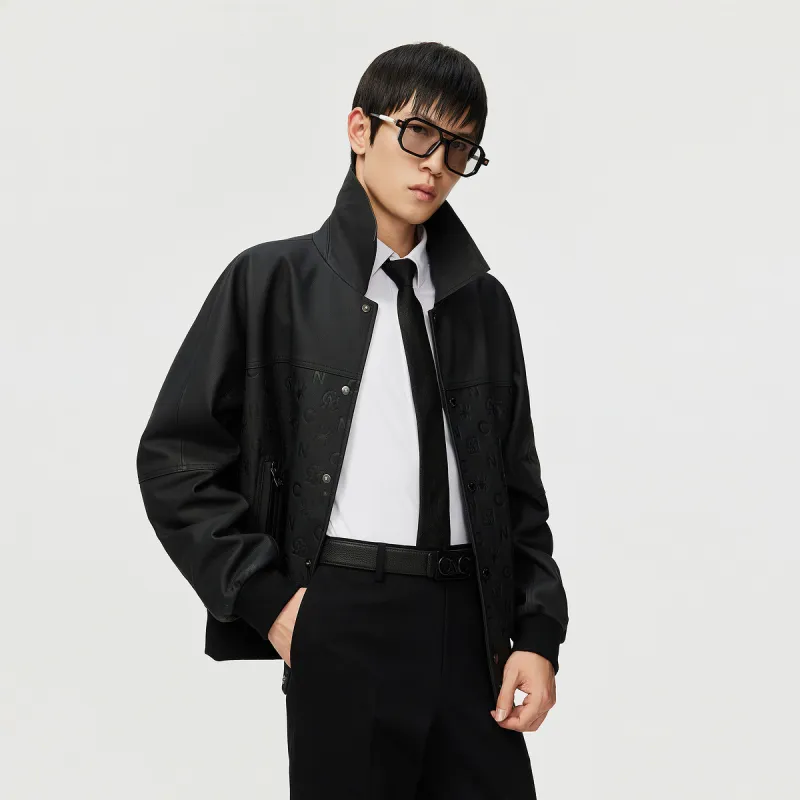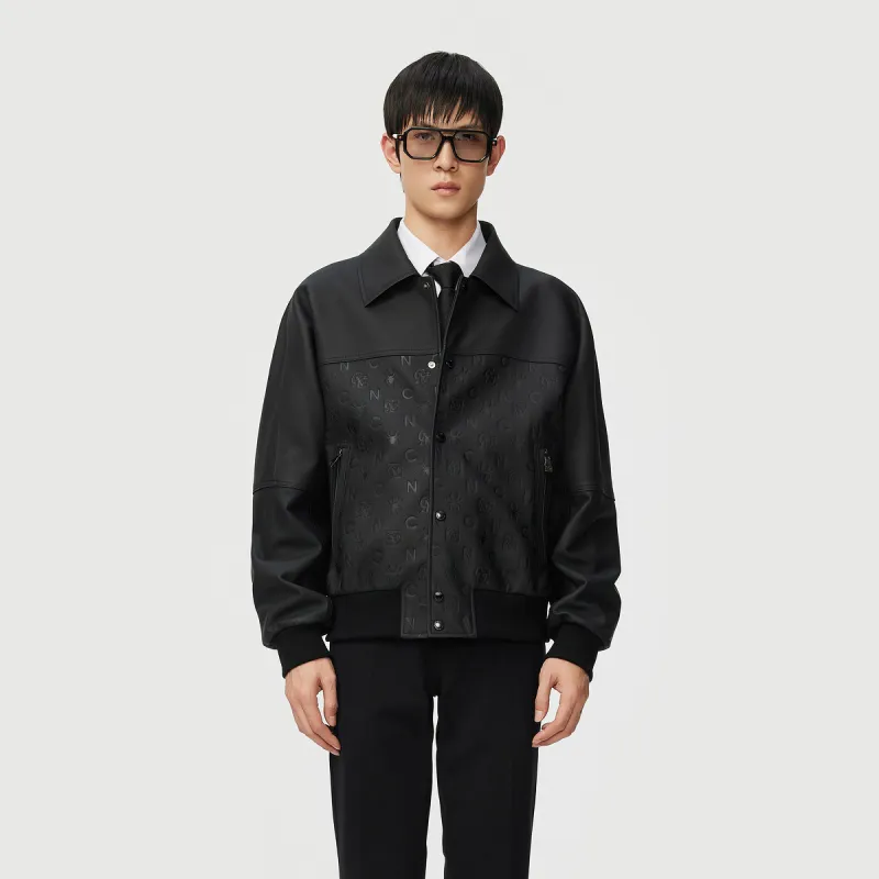 C'N'C 트렌드 시리즈 블랙 남성 가죽 자켓 - POIZON