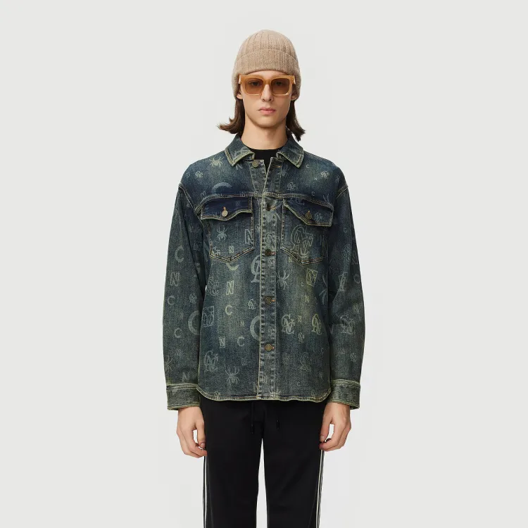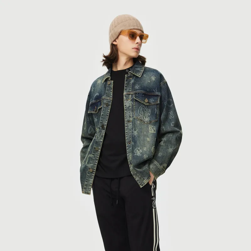 C'N'C 트렌드 시리즈 블루 패턴 남성 데님 자켓 - POIZON