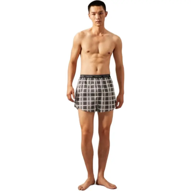 캘빈 클라인 3팩 세트 스페이스 블랙+블랙 화이트 체크+레터링 올오버 프린트 남성 드로즈 - POIZON