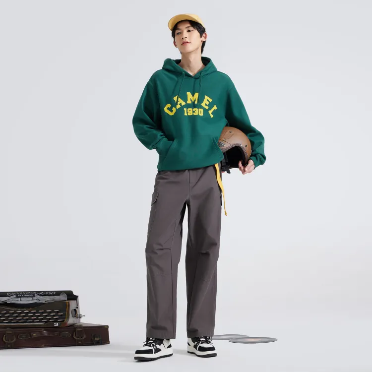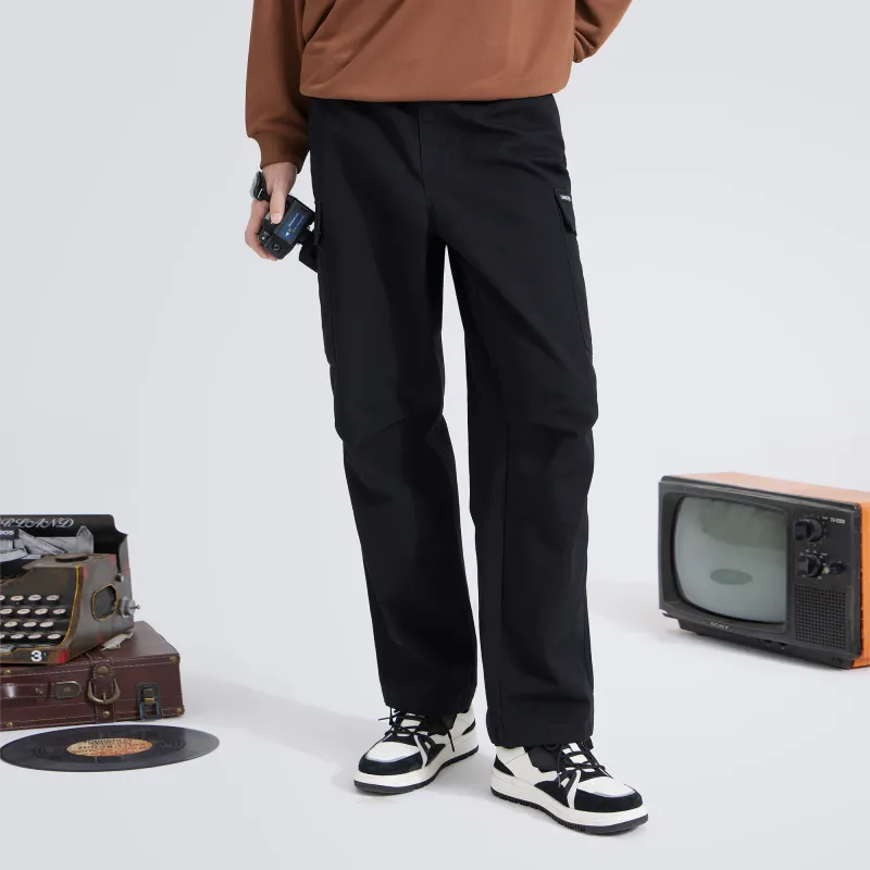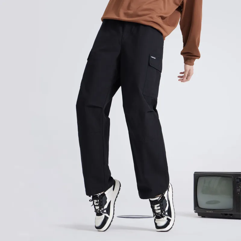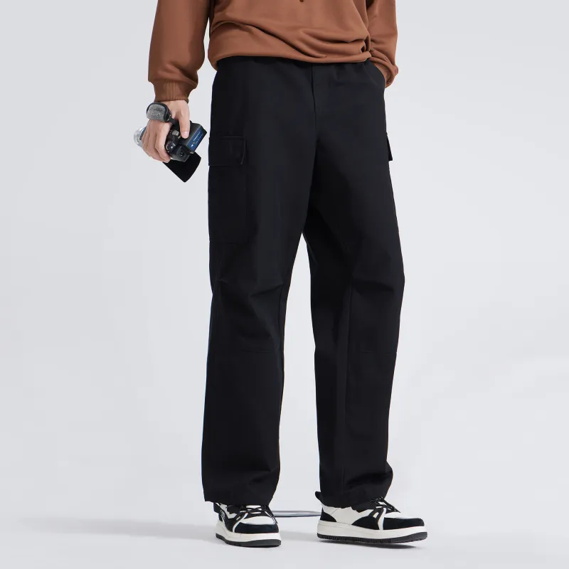 카멜 100% 순면 양면 드로스트링 조거핏 와이드 레그 스트레이트핏 파라슈트 팬츠 및 라지 포켓 카고 바지 남성 - POIZON