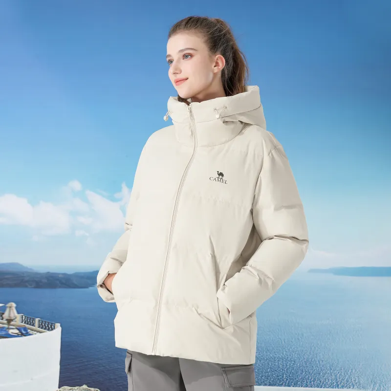 카멜 웜 플리스 시리즈 남녀공용 다운 재킷 - POIZON