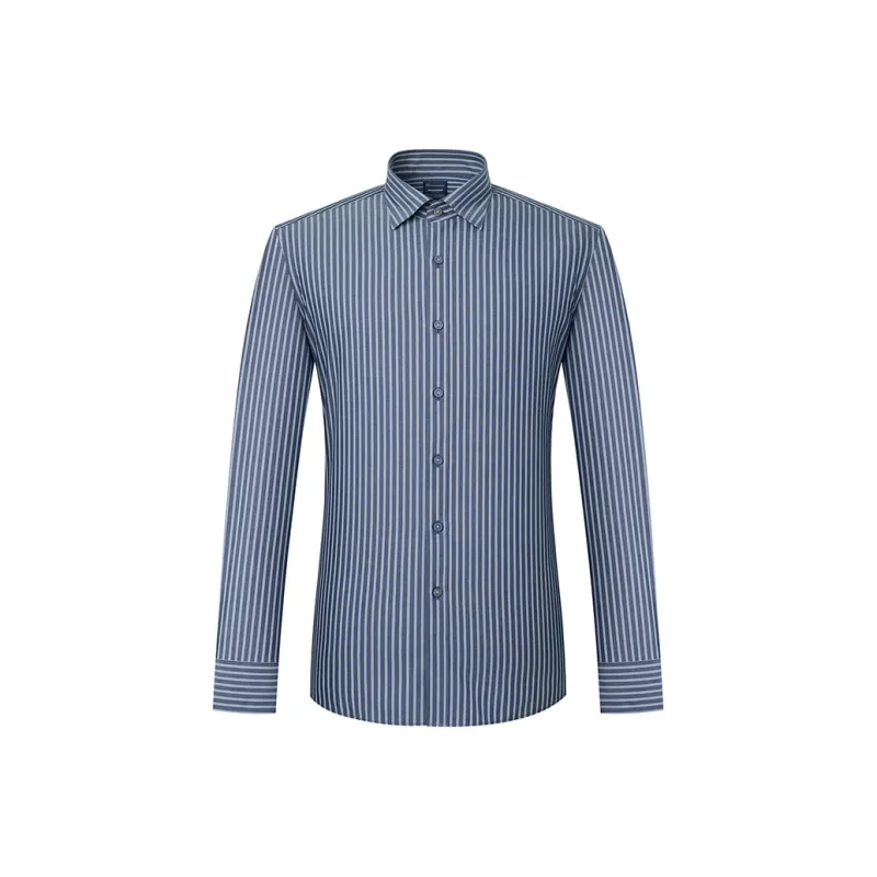 Camicissima 그레이 블루 스트라이프 패턴 히든 버튼 칼라 남성 셔츠 - POIZON