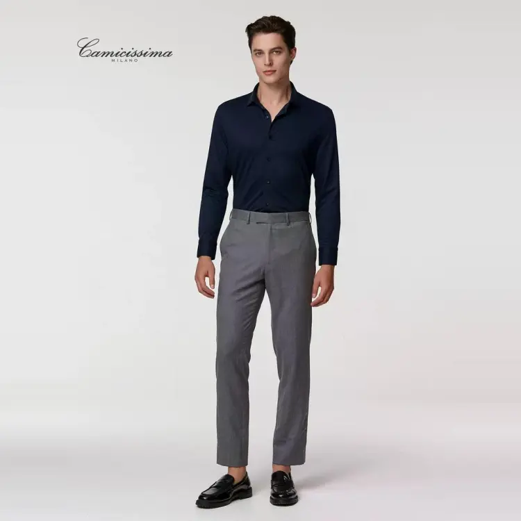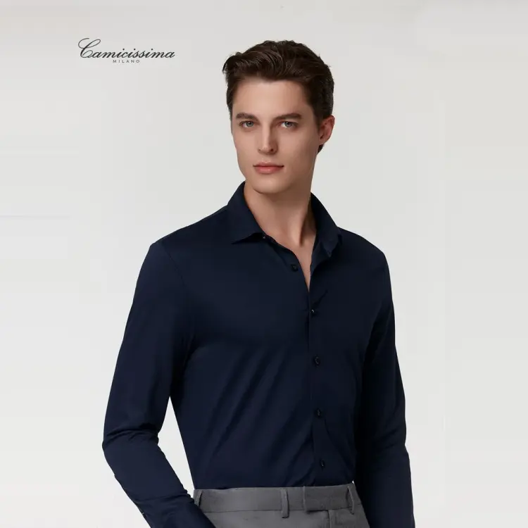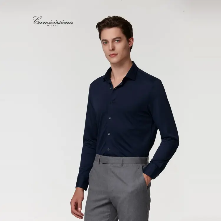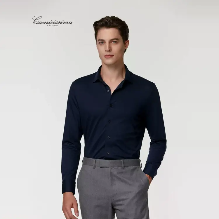Camicissima 네이비 블루 세미 프렌치 카라 남성 셔츠 - POIZON