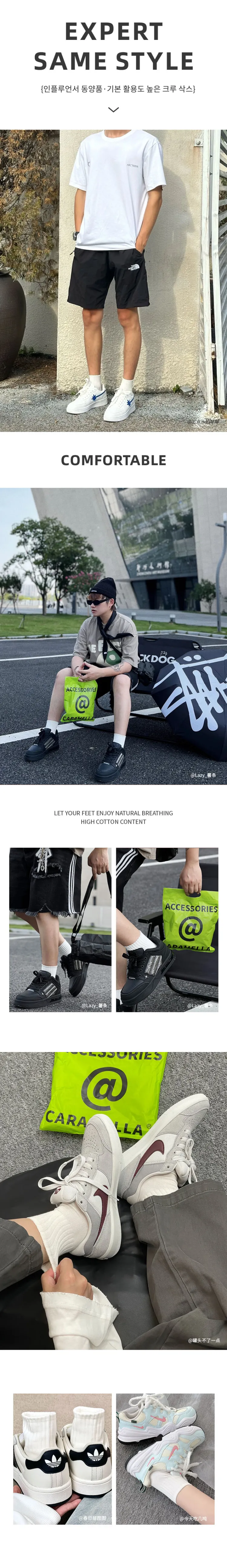 성분 함량 4: 77.3% 면, 20.7% 폴리에스터, 2.0% 스판덱스 (신축성 서클 제외) 성분 함량 5: 81.2% 면, 17.2% 폴리아미드, 1.6% 스판덱스 (신축성 서클 제외) 성분 함량 6: 77.3% 면, 20.7% 폴리에스터, 2.0% 스판덱스 (신축성 서클 제외)