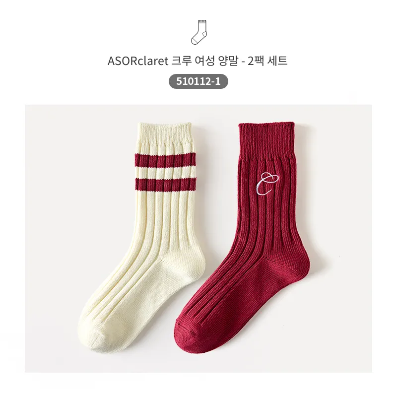 Caramella 2팩 ASOR Claret 도톰한 실 양말 여성 크루 삭스