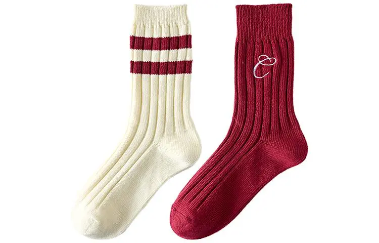 Caramella 2팩 ASOR Claret 도톰한 실 양말 여성 크루 삭스 - POIZON