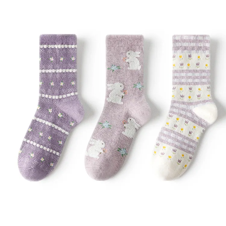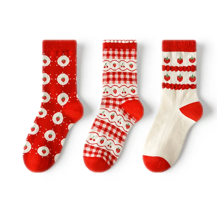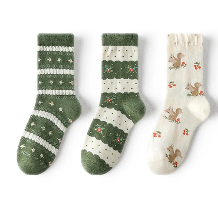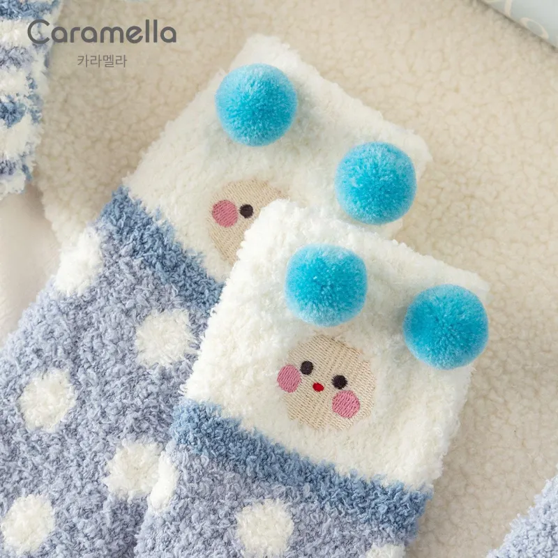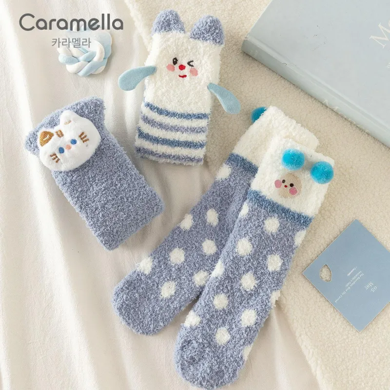 카라멜라 x QIANYUQIANXUN 중목 양말 여성 3팩 세트