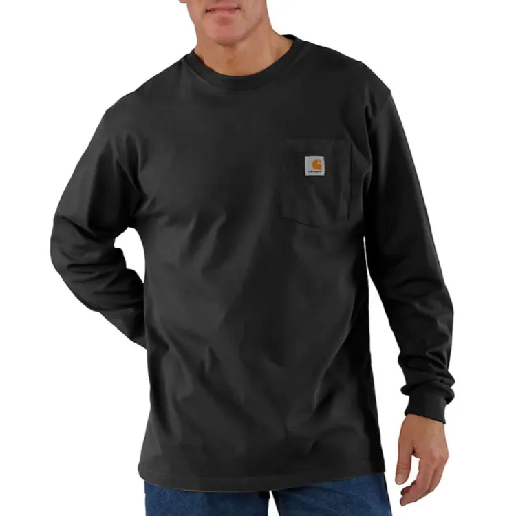 칼하트 루즈핏 헤비웨이트 톨 롱슬리브 포켓 티셔츠 블랙 - POIZON