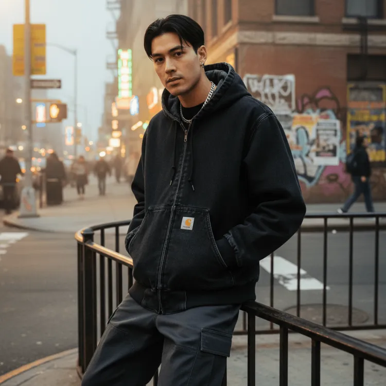 칼하트 Wip 메이틀랜드 데님 Og 액티브 자켓 블랙 스톤 워시드 - POIZON