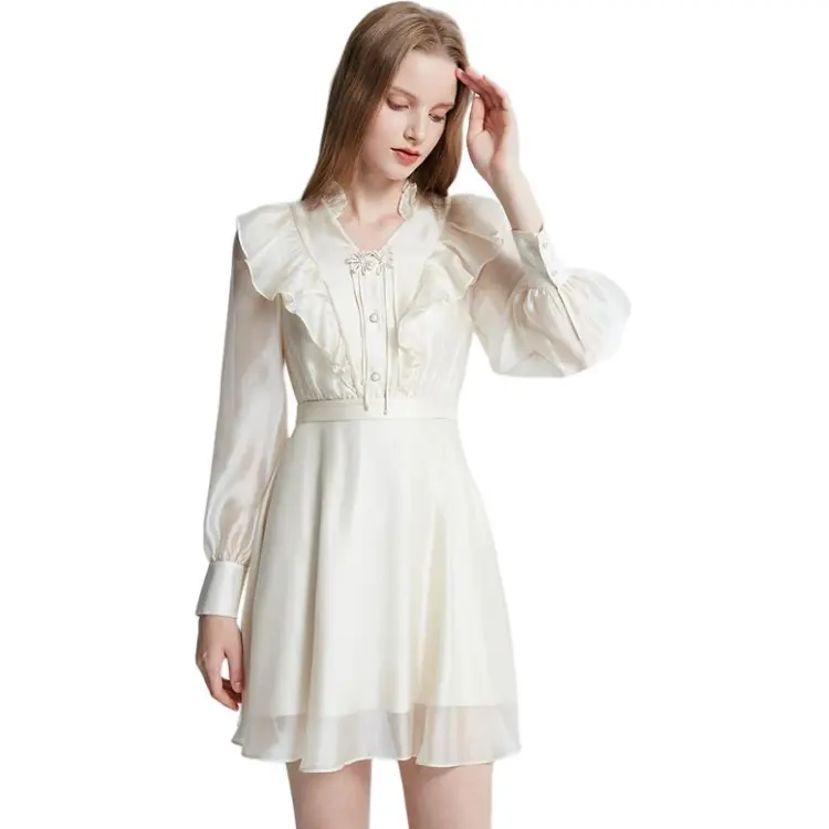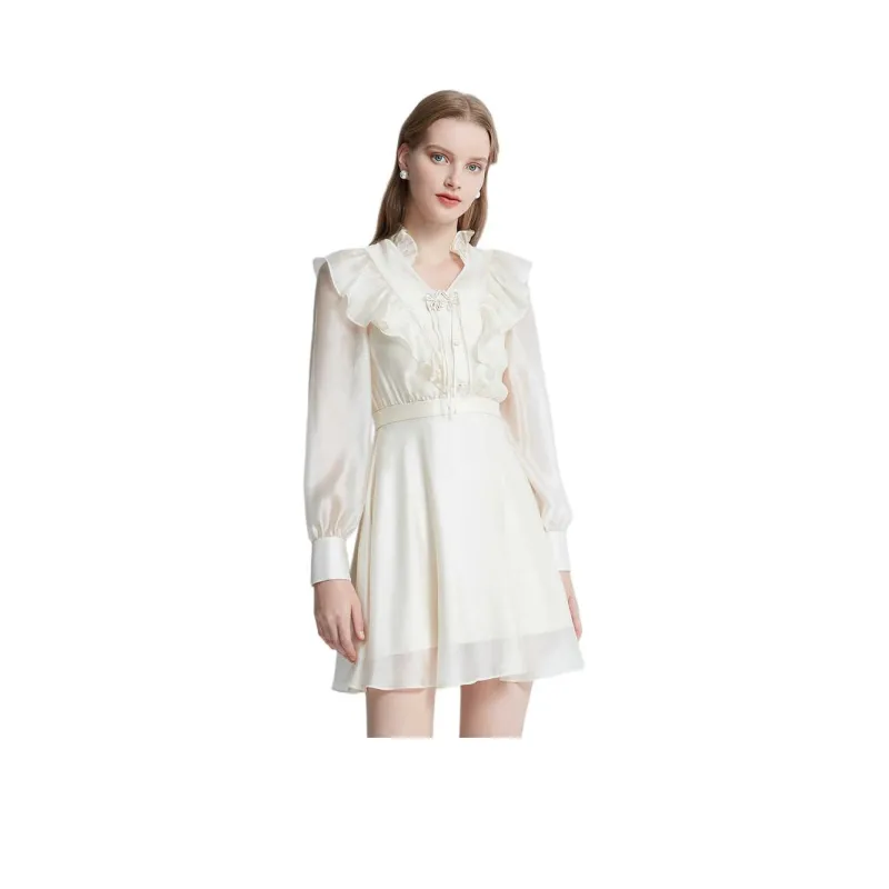 Caroline 라이트 애프리콧 색상 여성 긴팔 원피스