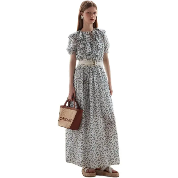 Caroline 블루 여성 반팔 원피스 - POIZON