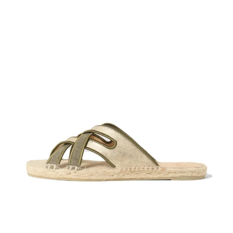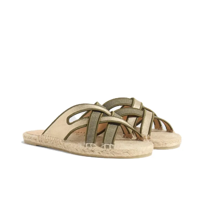 까스따네르 슬라이드 슬리퍼 베이지 그린 여성