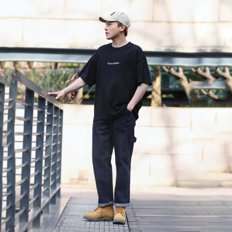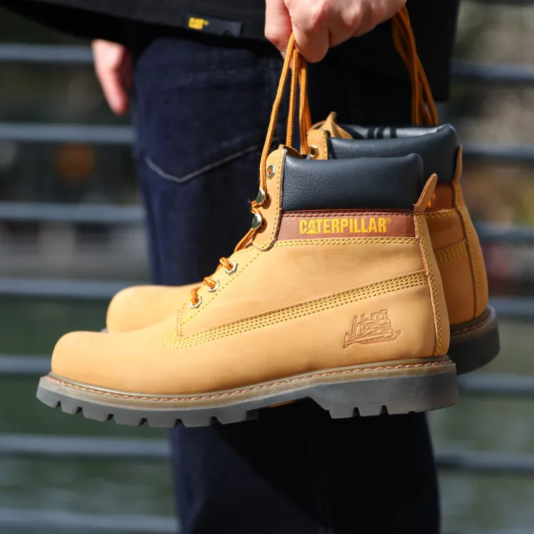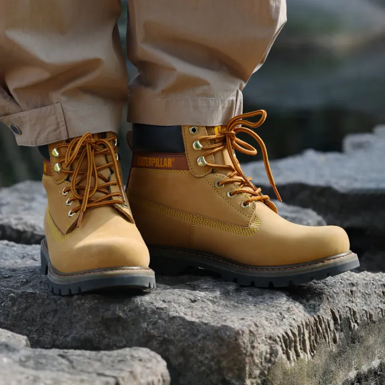 CAT 콜로라도 통기성 좋은 내마모성 미끄럼 방지 니하이 아웃도어 부츠 남성 블랙 옐로우 - POIZON