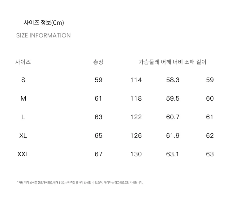 가슴둘레: 114cm 총장: 59cm 소매 길이: 59cm