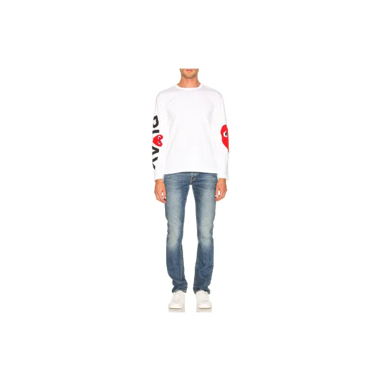 플레이 꼼데가르송 빅 하트 롱슬리브 티셔츠 화이트 - POIZON