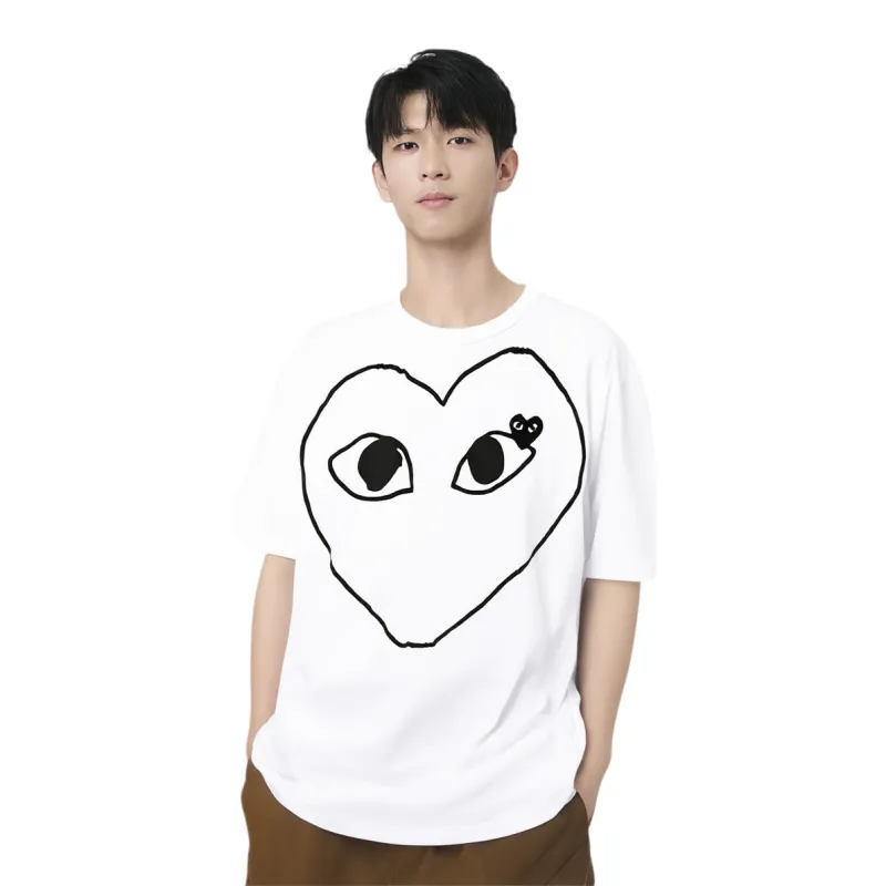 플레이 꼼데가르송 프린팅 블랙 하트 프린팅 티셔츠 화이트 - POIZON