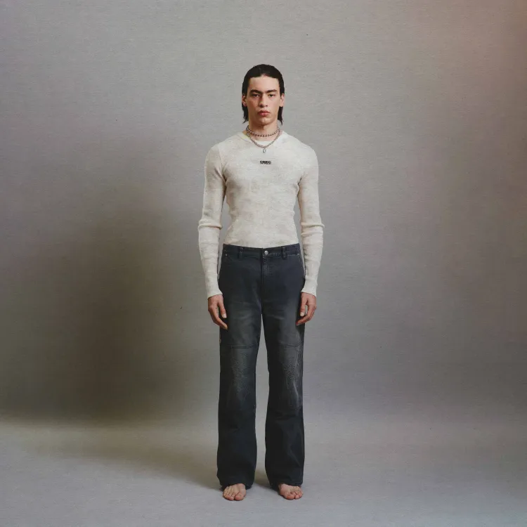 Createexploreexpandconquer 24FW 타이트 핏 언더셔츠 스웨터 남녀공용 라이트 카키