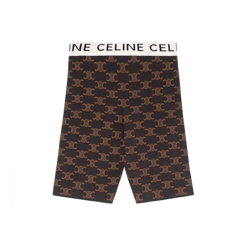 (W) 셀린느 실크 코튼 모노그램 바이커 쇼츠 브라운 - POIZON