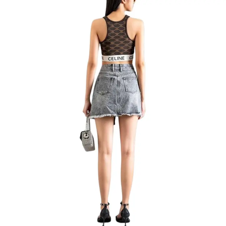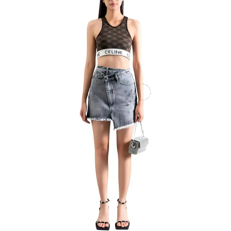 (W) 셀린느 모노그램 실크 코튼 스포츠 브라 브라운 - POIZON