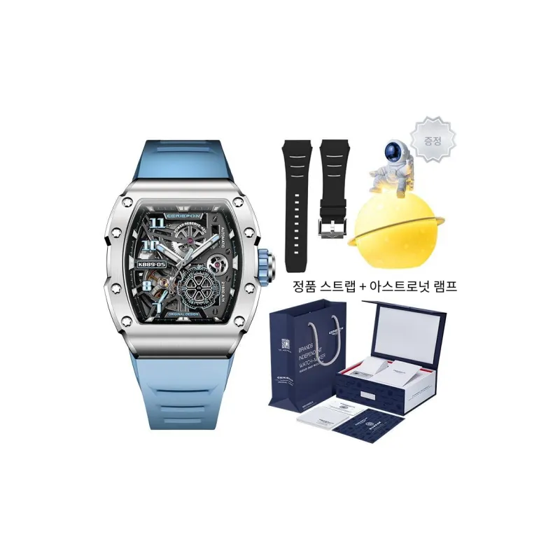 CERIEPON 실버 스톤 레이싱 컬렉션 컷아웃 학생 남성 시계 메커니컬 무브먼트 고무 스트랩 중국 시계 남성용 시계 블랙 다이얼 - POIZON