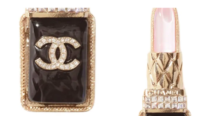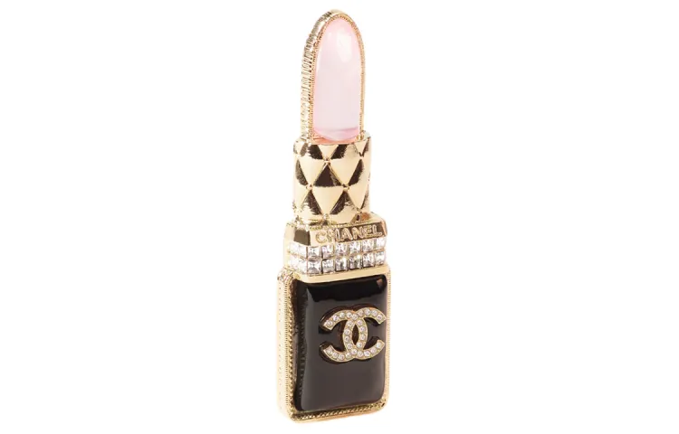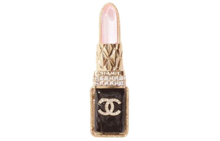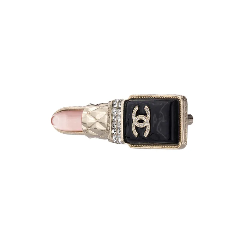 샤넬 브로치 메탈 글래스 스트라스 & 골드 블랙 펄리 핑크 크리스탈 - POIZON