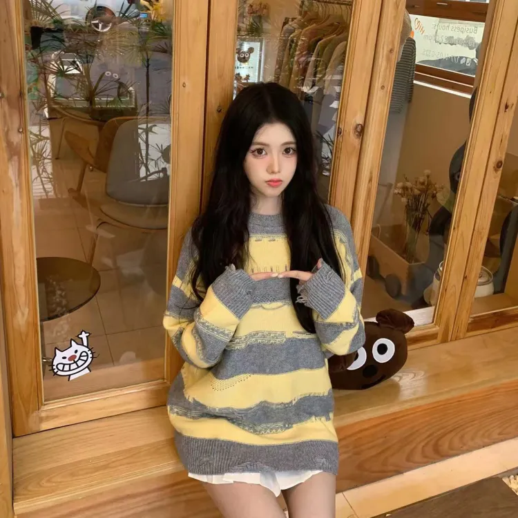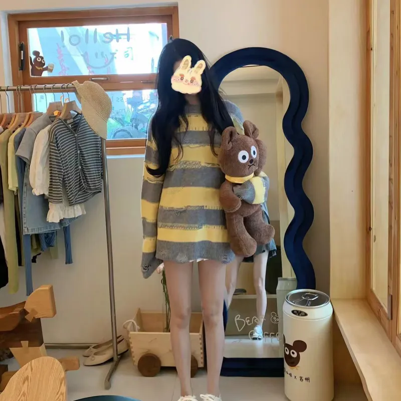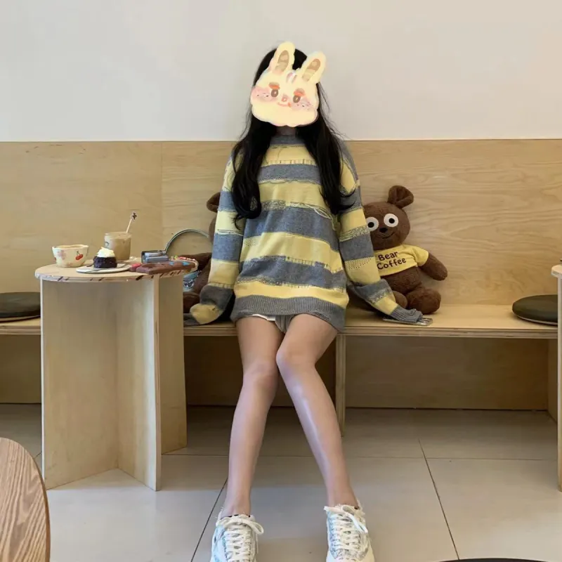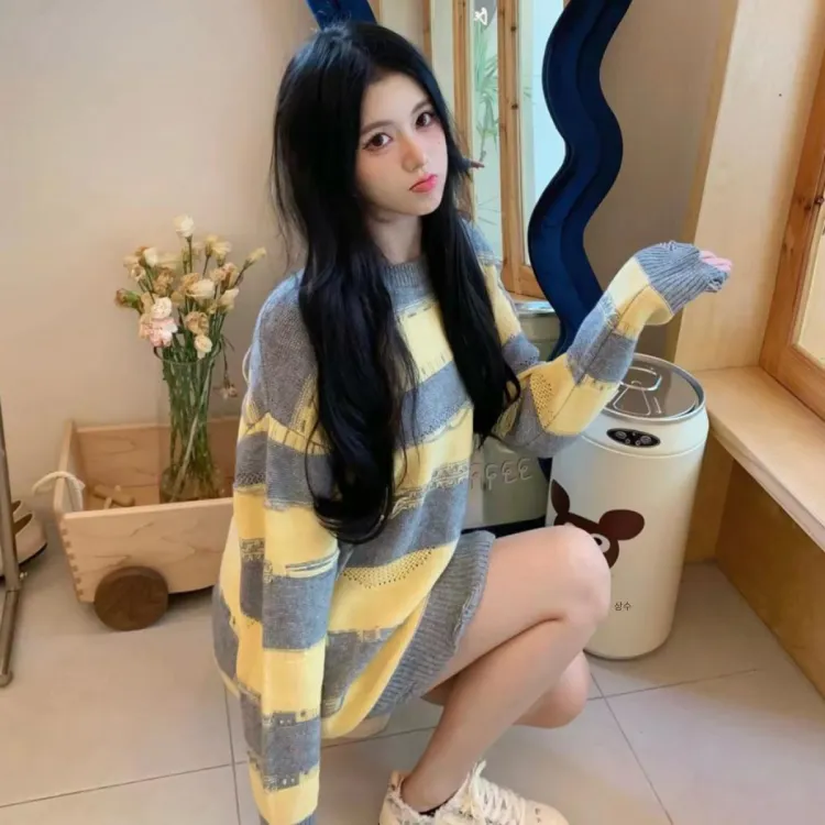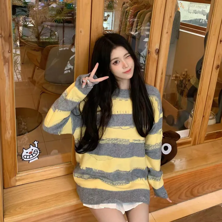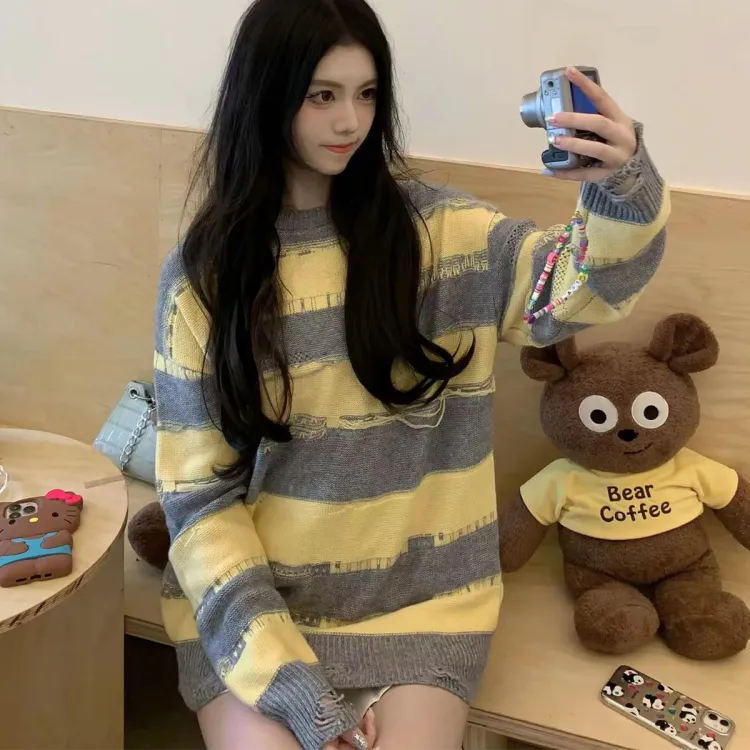 Charlie Luciano 스웨터 남녀공용 옐로우 그레이